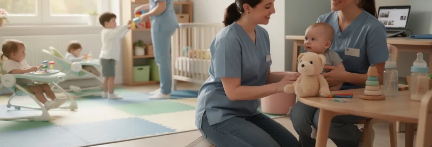 Le premier contact avec la structure d’accueil se déroule systématiquement en présence du parent, créant ainsi un triangle relationnel sécurisant entre l’enfant, sa figure d’attachement principale et le professionnel référent. Cette rencontre initiale, d’une durée limitée à 30-45 minutes, permet au nourrisson d’explorer visuellement et sensoriellement son nouvel environnement sans vivre de rupture affective brutale. Durant ce temps, le professionnel observe attentivement les interactions parent-enfant, recueille des informations précieuses sur les habitudes quotidiennes et commence à établir un premier lien avec le tout-petit. Cette étape constitue également un moment privilégié pour les parents qui peuvent poser leurs questions, exprimer leurs appréhensions et découvrir concrètement le fonctionnement de la structure.